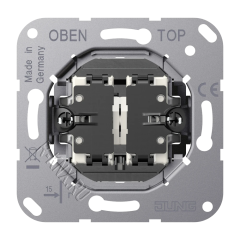 Jung 1 клавишный механизм, тумблерная кнопка без фиксации, сухой контакт, 2 NO контакт, нормально разомкнутый, клавиша в нейтральном положении, винтовой зажим, 10 A 250 В ~