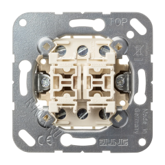 Jung 2 клавишный механизм, тумблерная кнопка без фиксации, сухой контакт, 2 NO контакт, нормально разомкнутый, пружинный зажим, 10 A 250 В ~