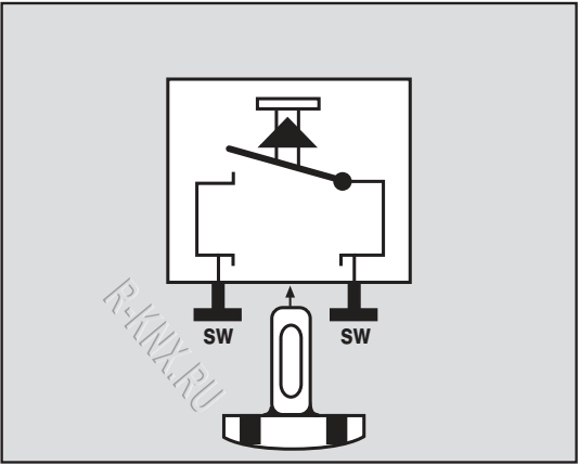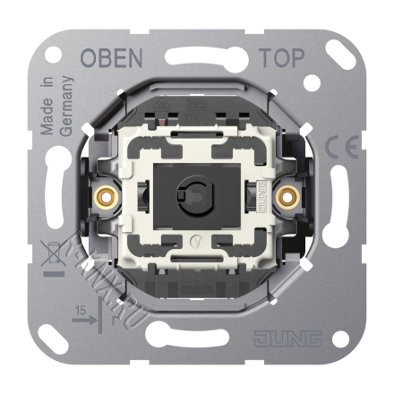 Jung 1 клавишный механизм, тумблерная кнопка без фиксации, сухой контакт, 1 NO контакт, нормально разомкнутый, пружинный зажим, 10 A 250 В ~