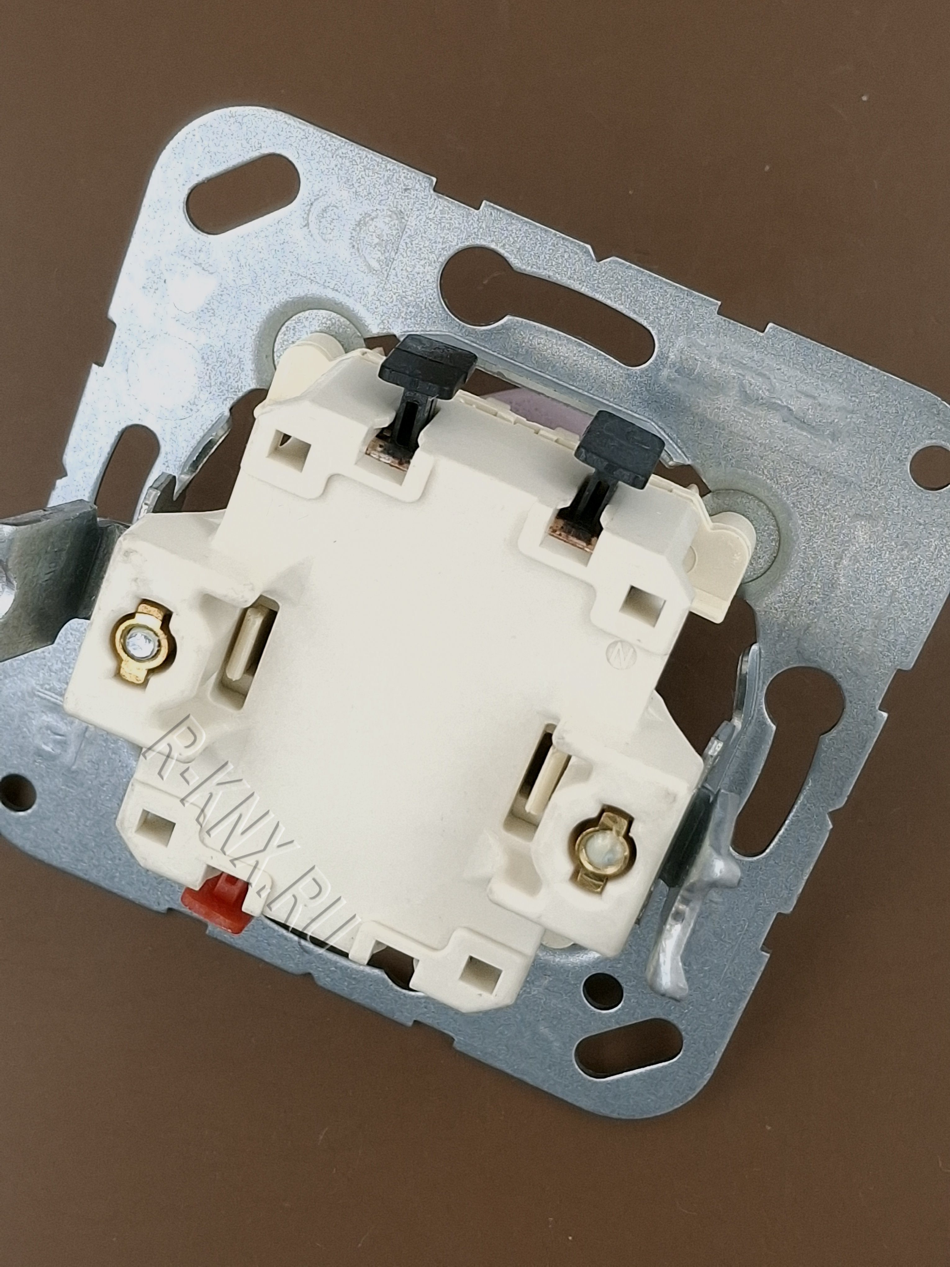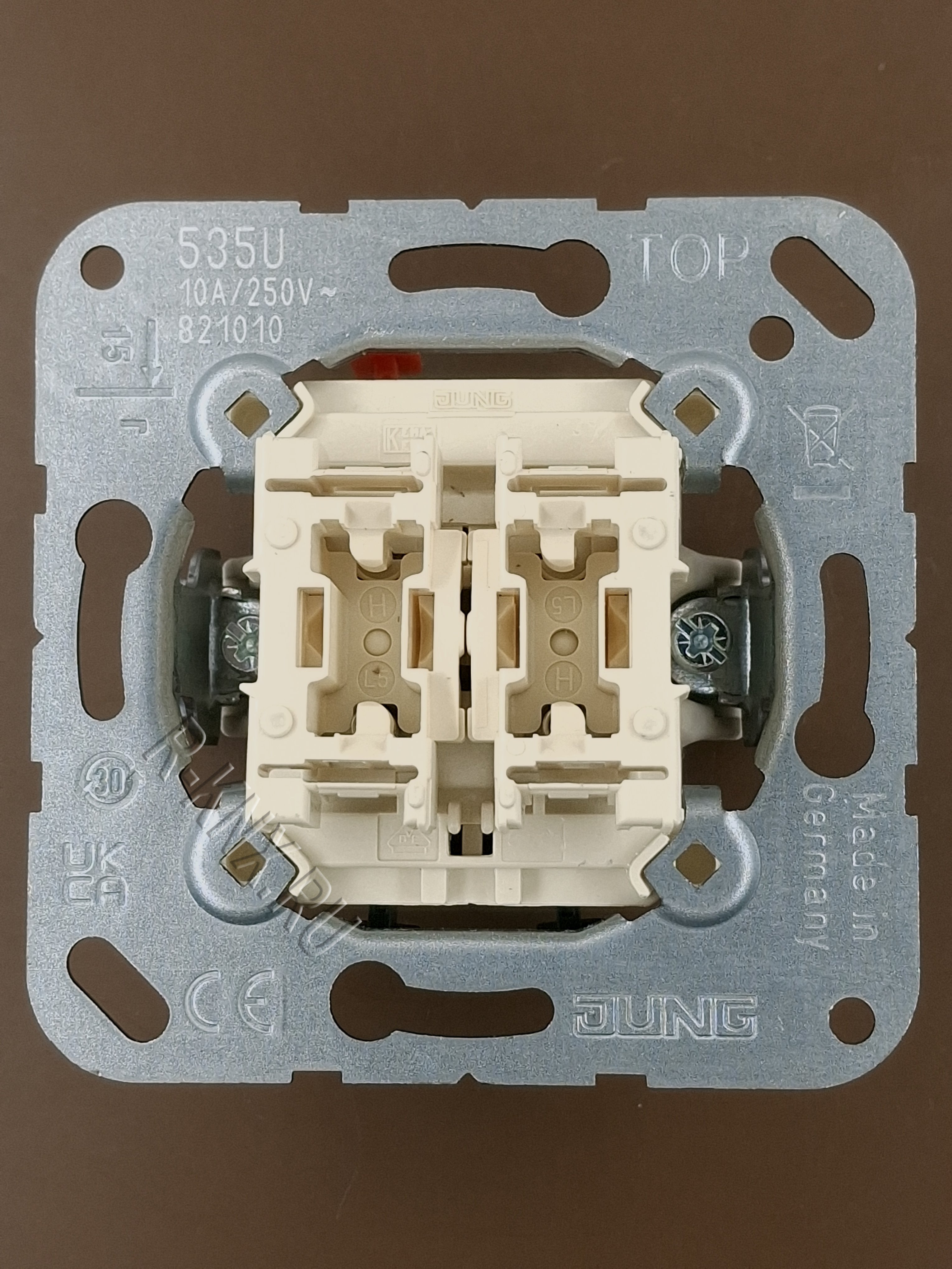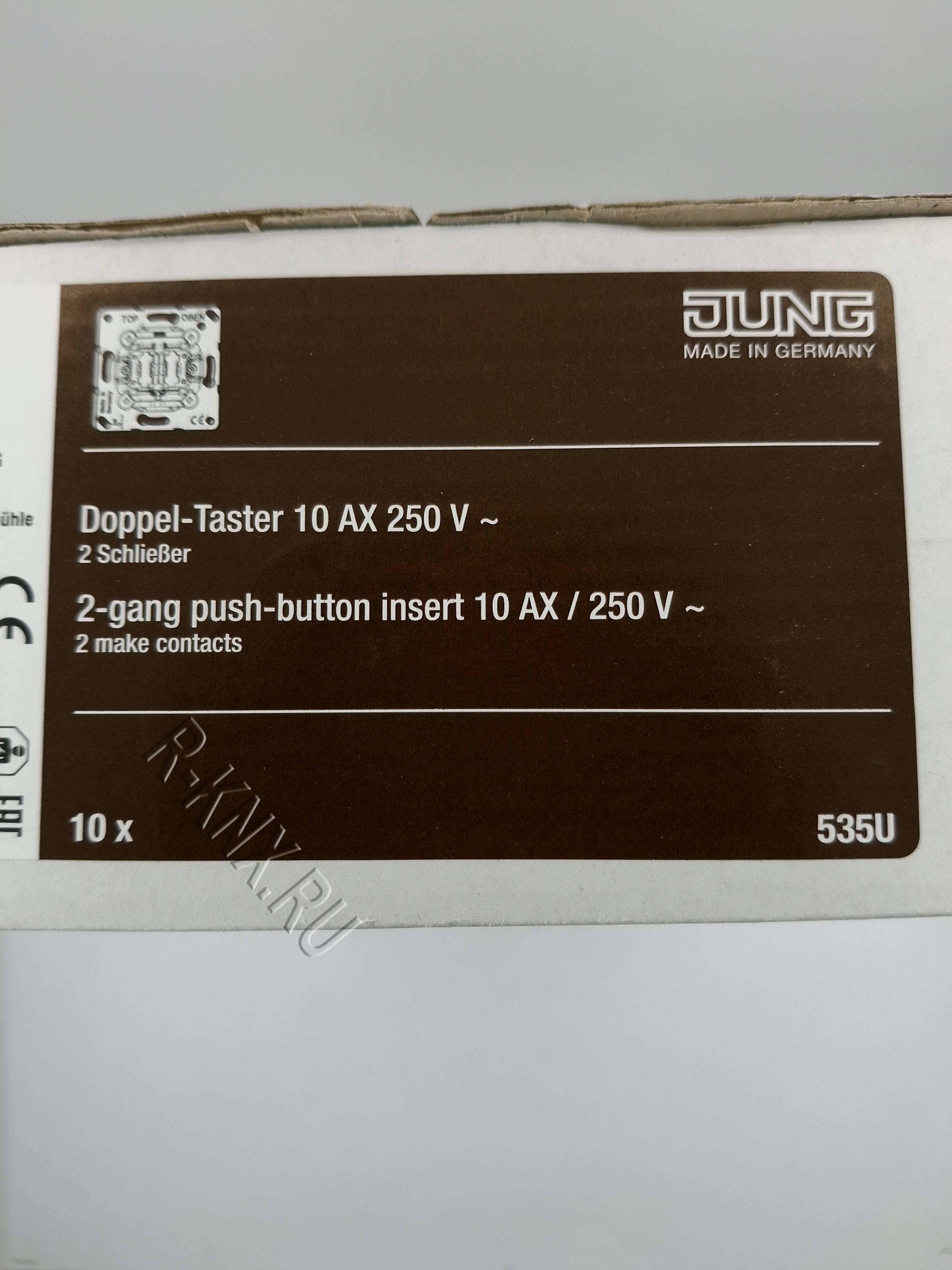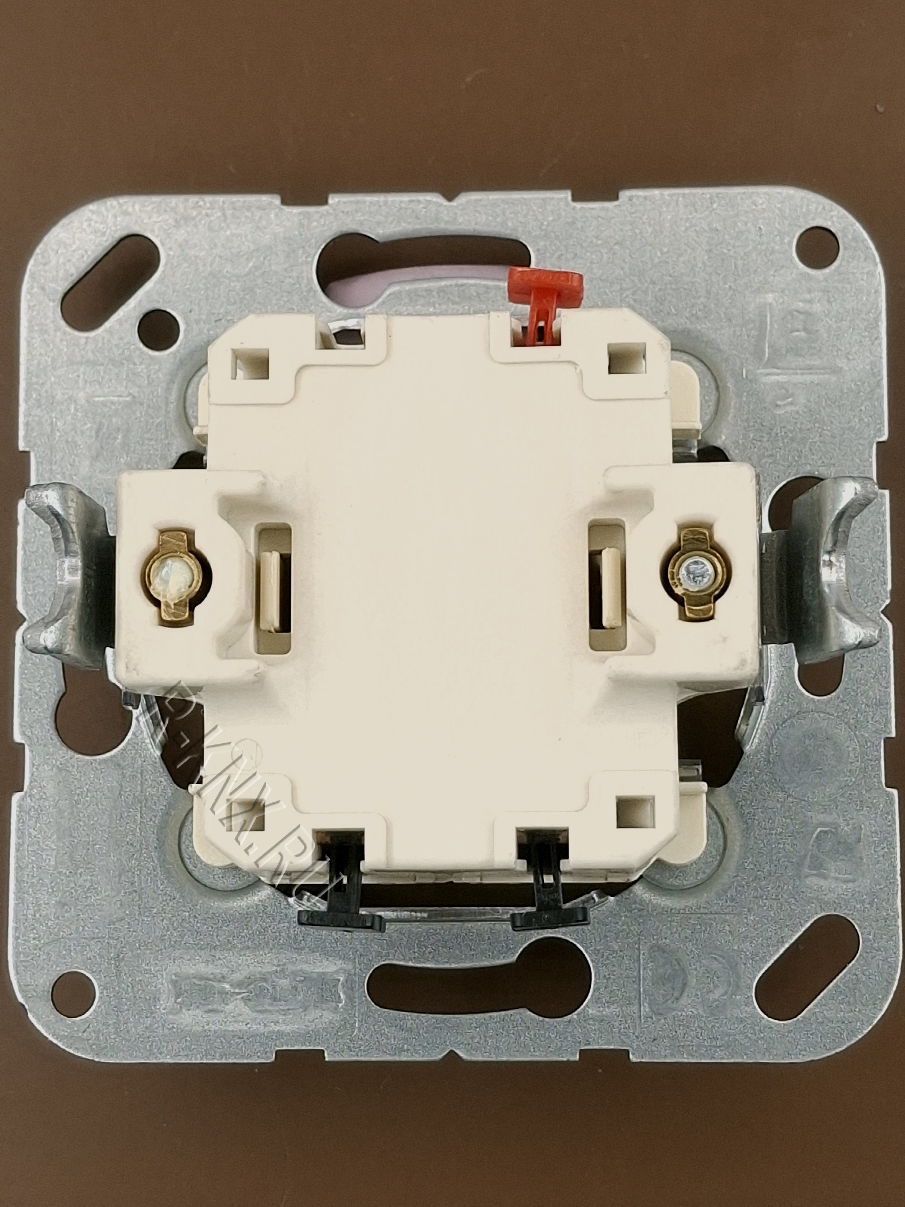 Jung 2 клавишный механизм, кнопка без фиксации, сухой контакт, 2 NO контакт, нормально разомкнутый, пружинный зажим, 10 A 250 В ~