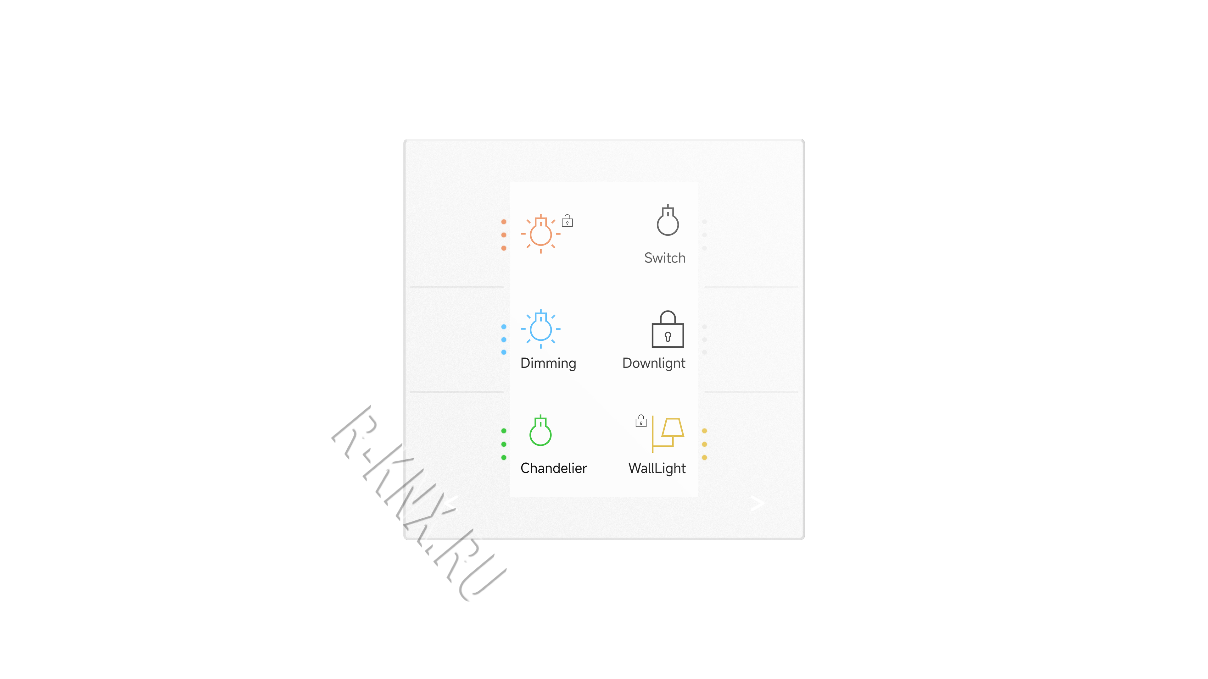 8 ёмкостных сенсорных клавиш: 6 из матового стекла, с подсветкой и индикацией, для управления устройствами (индивидуальная или рокерная