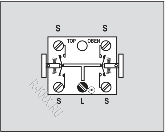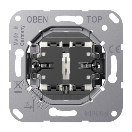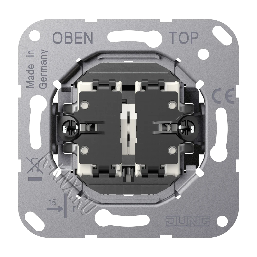 Jung 2 клавишный механизм, тумблерная кнопка без фиксации, сухой контакт, 4 NO контакт, нормально разомкнутый, клавиши в нейтральном положении, винтовой зажим, 10 A 250 В ~