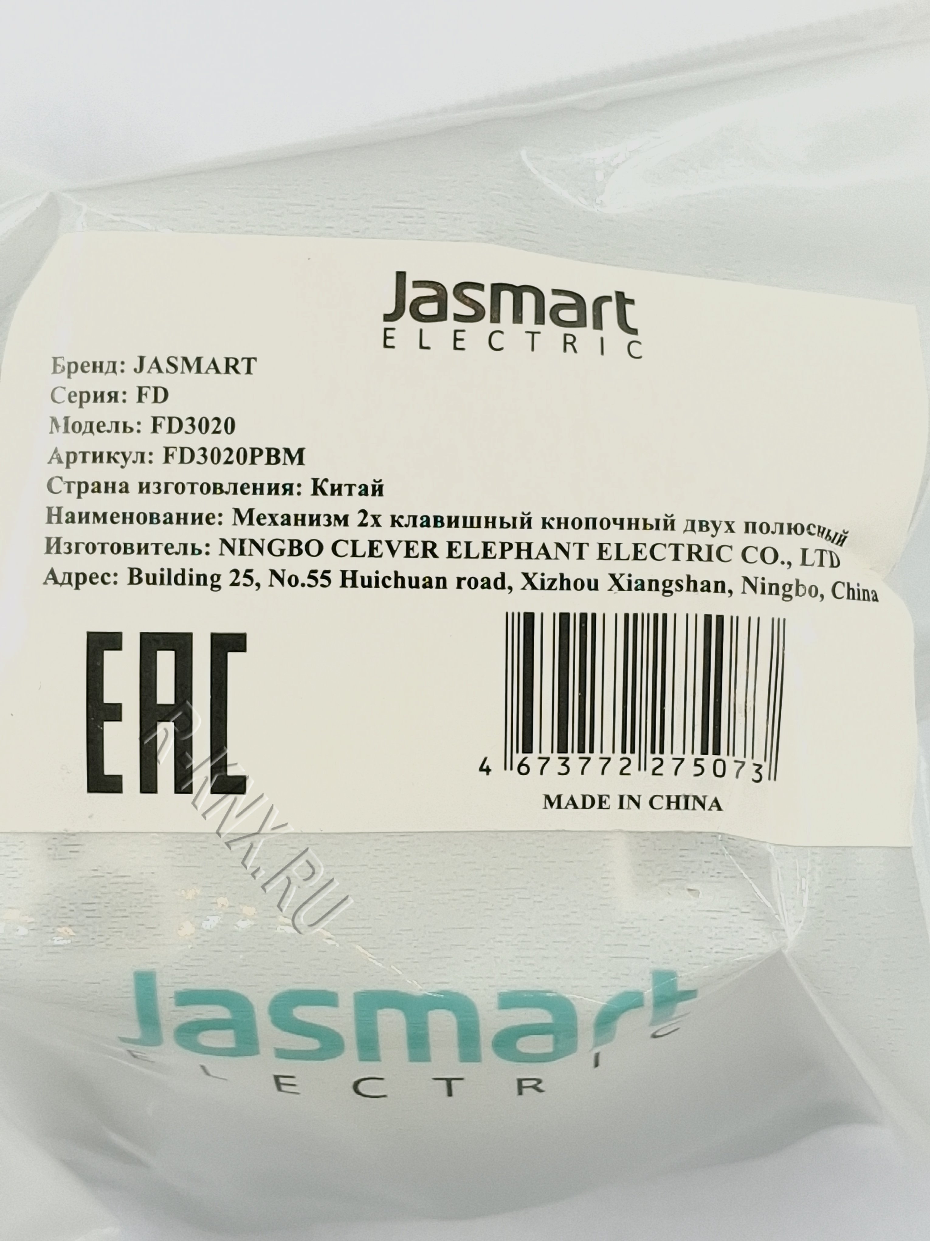 Jasmart, серия FD, черный матовый soft touch, 2 клавишная кнопка без фиксации, сухой контакт, 2 NO контакт, нормально разомкнутый, винтовой зажим, 10 A 250 В ~