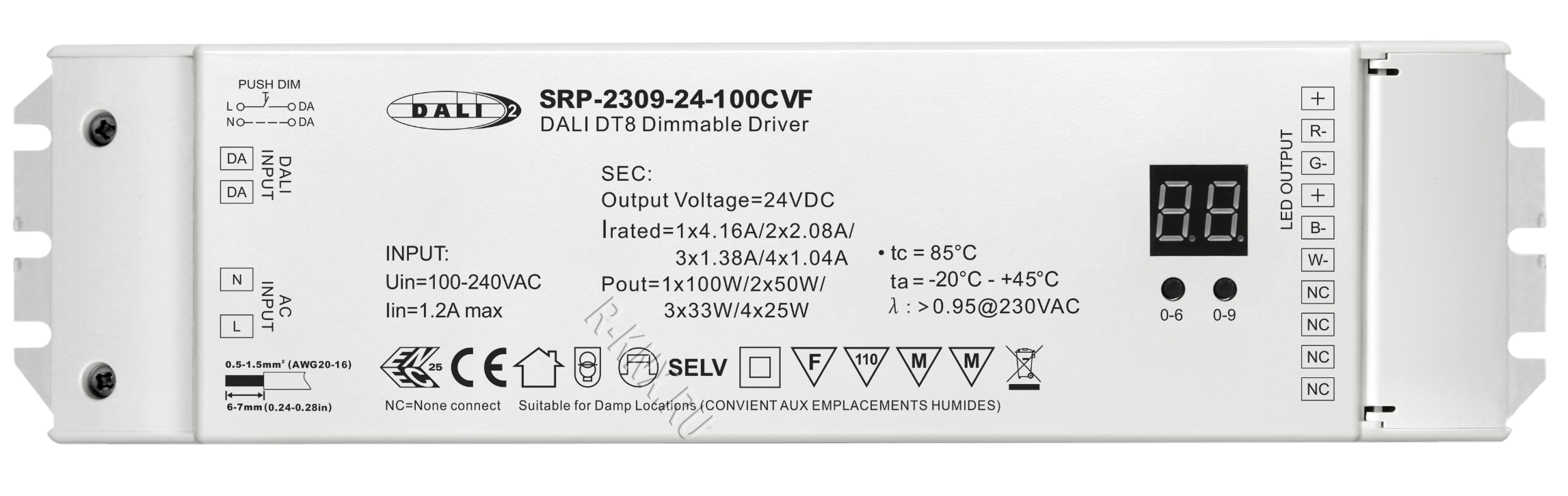 • LED драйвер с регулируемой яркостью, макс. общая выходная мощность 100 Вт