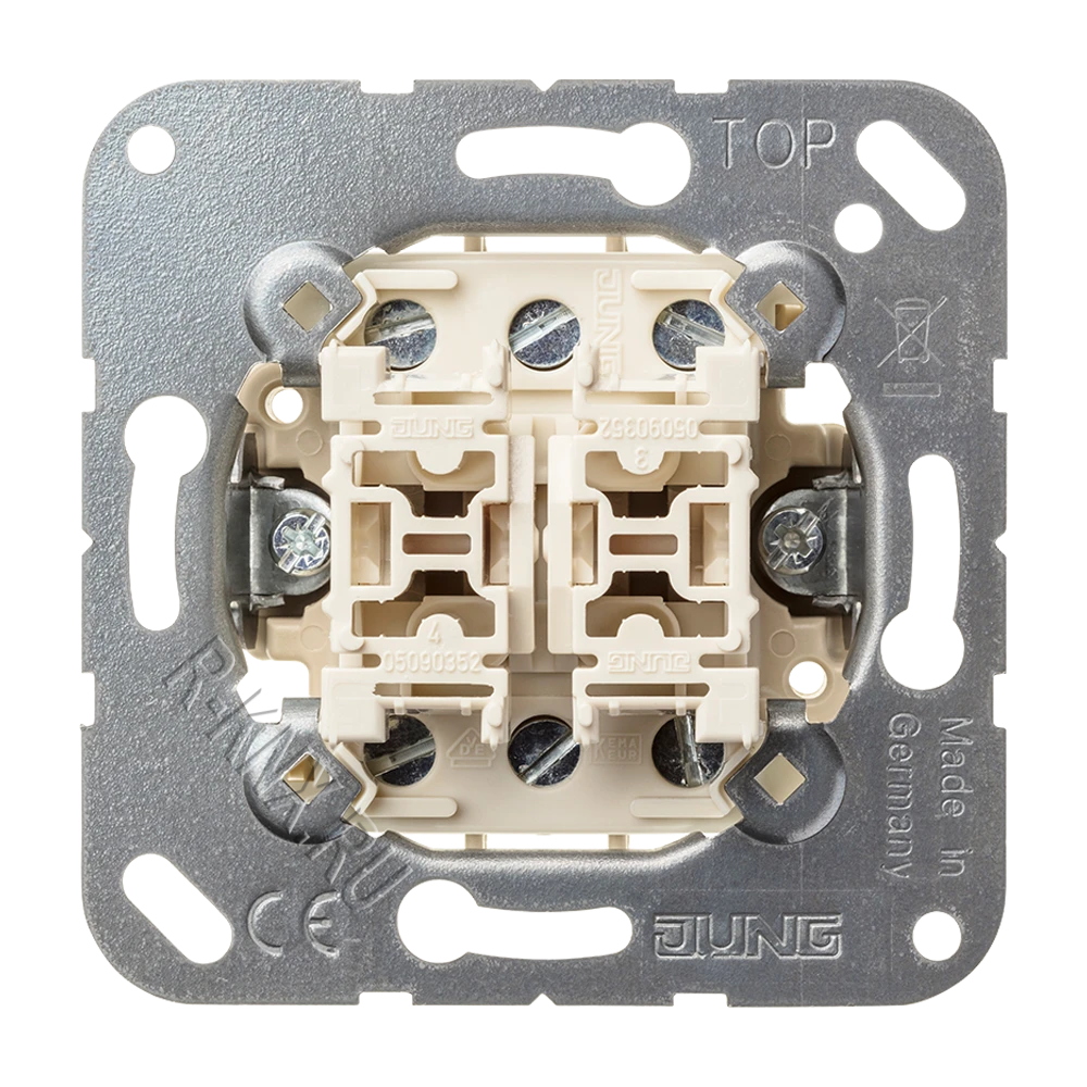 Jung 2 клавишный механизм, кнопка без фиксации, сухой контакт, 4 NO контакт, нормально разомкнутый, клавиши в нейтральном положении, винтовой зажим, 10 A 250 В ~